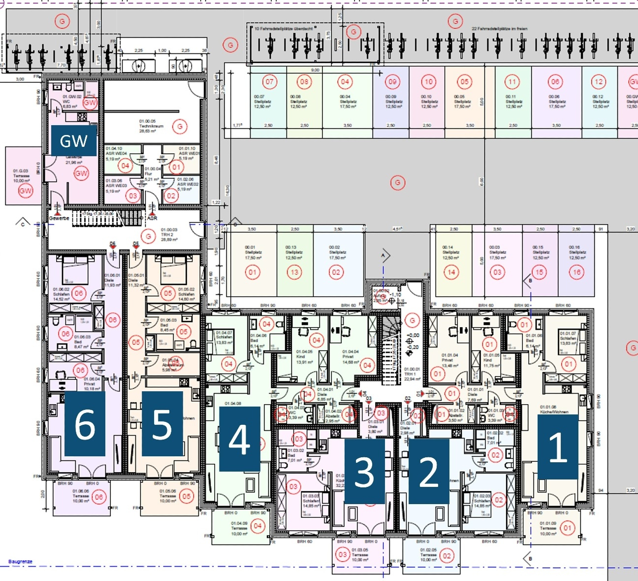 Erdgeschoss - Wohnung 1-6 und Gewerbeeinheit